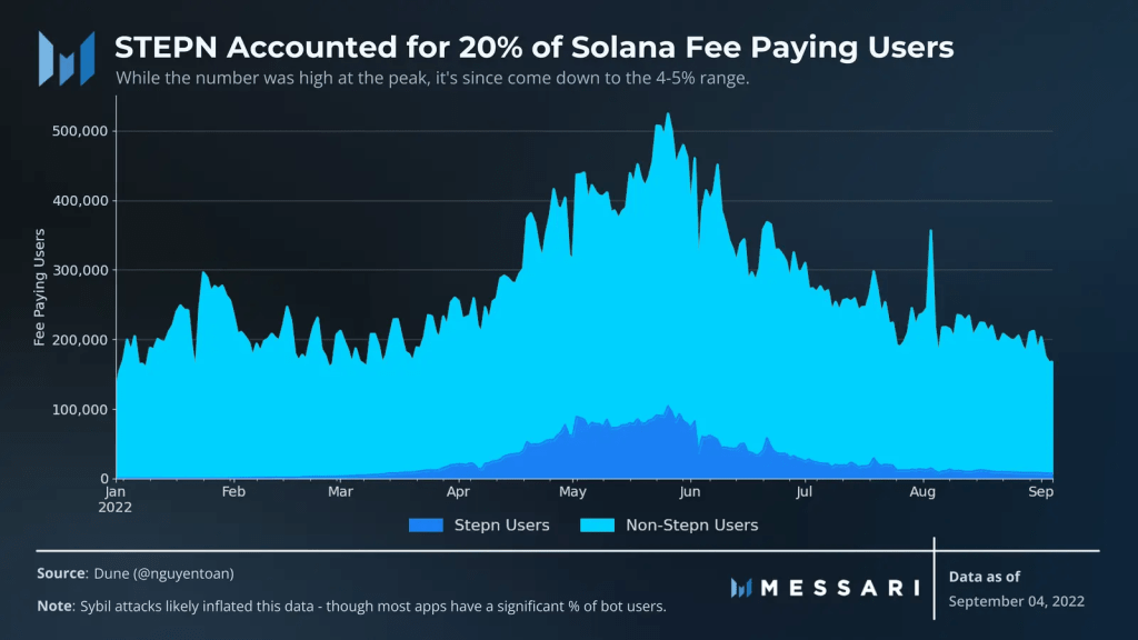 At its peak in May, STEPN accounted for almost 20% of the unique daily paying users on Solana. It is one of the projects that has the user base of one of the most productive blockchains in history on a “Move to Earn” app. STEPN’s success is hailed as a strong point in the use case of the “Play to Earn” model.