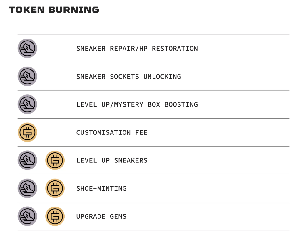 The system uses a two-token approach similar to that popularized by Axie Infinity, with GMT as the governance token and GST as the utility token of infinite supply.