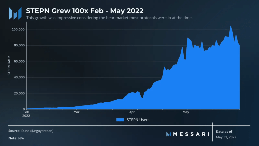 STEPN is a perfect microcosm of the key features, differences and challenges that Web3 games will face in the future. Incentives Monetization, ownership, and a STEPN support a relatively easy user experience on top. In doing so, the protocol generated $126 million in revenue thanks to the support of 100,000 daily users.